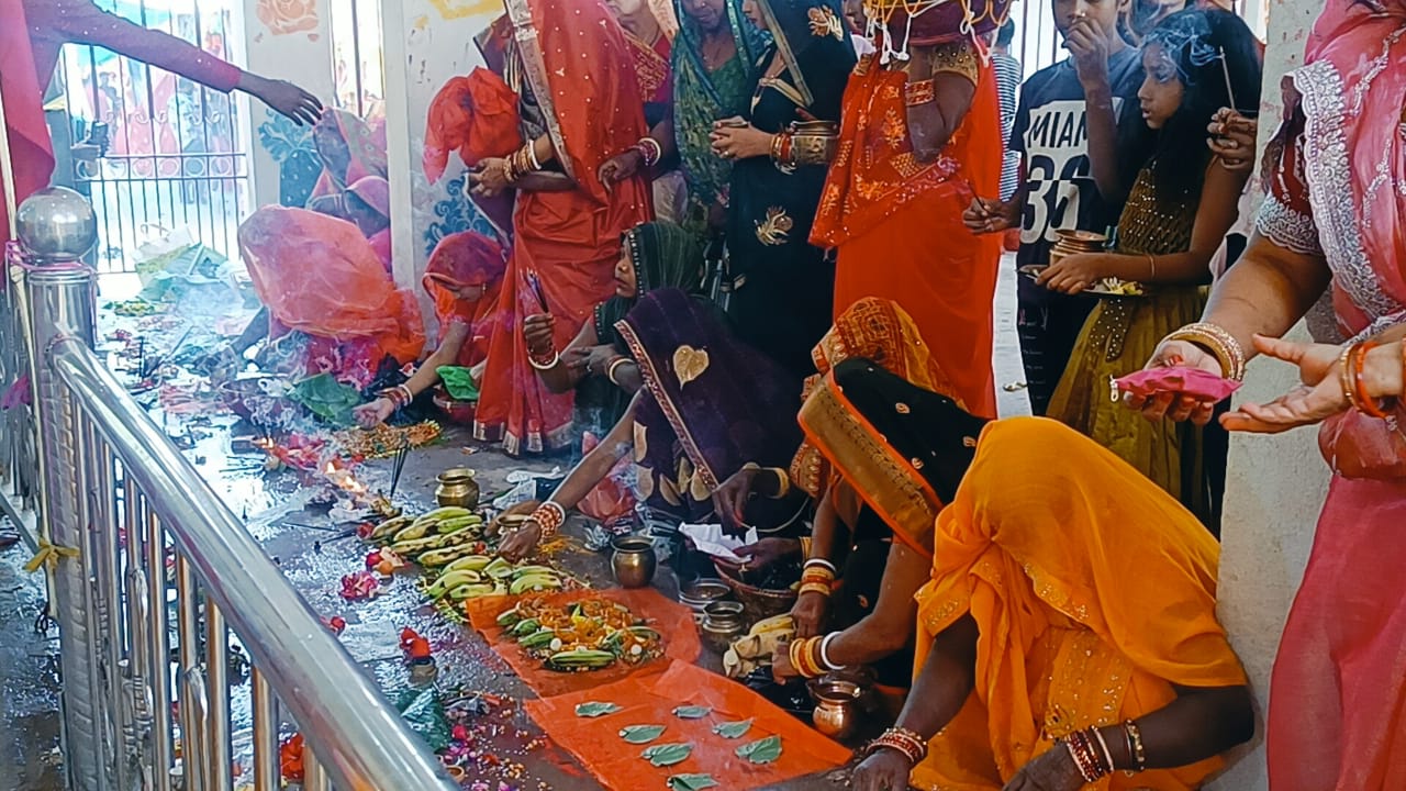 चैती नवरात्रि पर खोइछ भरने को लेकर मलंगिया मंदिर में उमड़ी महिला श्रद्धालुओं की भीड़