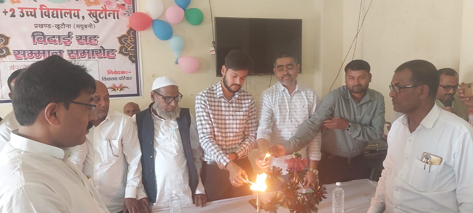 Madhubani: खुटौना प्रखंड मुख्यालय के समीप स्थित प्लस टू उच्च विद्यालय के सभागार में शुक्रवार को एक भावुक क्षण देखने को मिला, जब विद्यालय परिवार ने चार वरिष्ठ शिक्षकों को सेवानिवृत्ति के अवसर पर सम्मानपूर्वक विदाई दी। समारोह की शुरुआत संयुक्त रूप से दीप प्रज्वलन के साथ हुई, जिसकी अध्यक्षता विद्यालय के प्रधानाचार्य श्री विद्यालाल देव ने की।