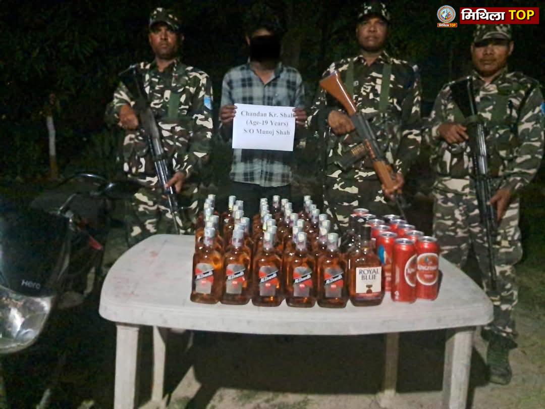 एसएसबी की विशेष रात्रि गश्ती दल ने नेपाल से भारत में अवैध रूप से लाई जा रही नेपाली शराब और एक मोटरसाइकिल को जब्त किया। जब्त की गई मद्यपान सामग्री में शामिल हैं: